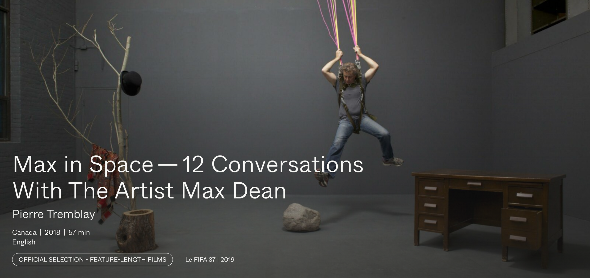 “Max Dean is a preeminent Canadian artist whose multidisciplinary work has startled, engaged and intrigued for decades. This documentary in the form of 12 conversations in 12 spaces over the course of one year follows Dean from studio to exhibition spaces and even into Lake Ontario to capture a year in the life of an artist who is constantly creating using new forms. Under the shadow of a long-term battle against cancer, he reflects eloquently on a lifetime of creative industry, ranging from the renowned robotic chair to photography and installations. As Dean ruminates on process and demonstrates the discipline inherent to his life as an artist, he offers a kind of Master class for students — while also reminding all of us what it means to create.”